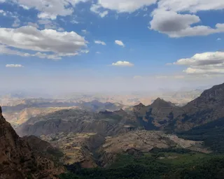 The Simien Mountains National Park was officially established in 1966 with the objective of preserving its unique Afro-alpine ecosystems and high number of endemic species of birds and wildlife that include the Ethiopian wolf, gelada baboon and walia ibex. Dubbed as the "Roof of Africa," Ethiopia has the highest elevated portion of landmass on the continent. The Simien Mountains are part of this landmass with unparalleled scenery. It was declared as a World Heritage site by UNESO in 1978. The region includes many summits above 4,000 mts and culminates in the highest point in Ethiopia and fourth highest peak in Africa, Mount Ras Dashen (4543 masl.) Its dramatic topography is the result of the erosion of basalt lavas that have been calculated to be nearly 3,000 mts thick. It is an ideal place for nature lovers and trekkers. The rainy season runs from June to September so travelling can be difficult during this period. November and December are the coldest months when the temperature is likely to go below freezing. Quote taken from Rosita Forbes, 1925 "From Red Sea to Blue Nile - A thousand Miles of Ethiopia." "The most marvelous of all Abyssinian landscapes opened before us, as we looked across a gorge that was clouded amethyst to the peaks of Simien. A Thousand, Thousand years ago, when the old god reigned in Ethiopia, they must have played chess with those stupendous crags, for we saw bishops' miters cut in lapis lazuli, castles with the ruby of approaching sunset on their turrets, an emerald knight where the forest crept up on to the rock and, far away, a king, crowned with sapphire and guarded by a row of pawns."